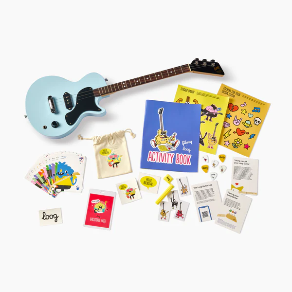 - Eine kleine 3-Saiter Les Paul® im ikonischen Gibson Design, inklusive Zugang zur Loog's "Learning App" (English), Chord Karten, Plektren, Aufklebern und Booklet